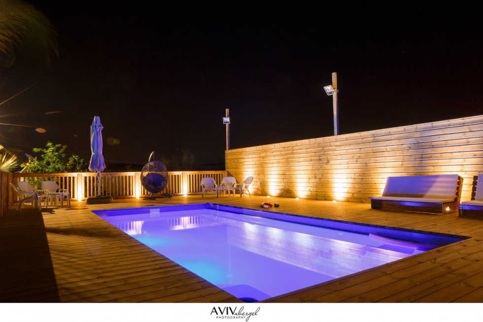 une grande piscine, des hamacs, pelouse, barbecue, romantique éclairage nocturne romantique, parking privé, salon face à la vue, meubles de jardin.